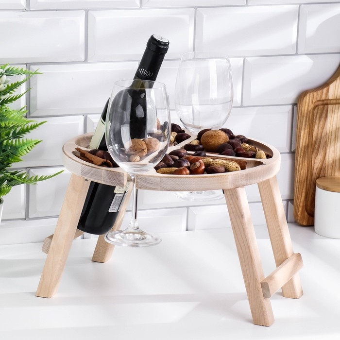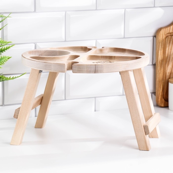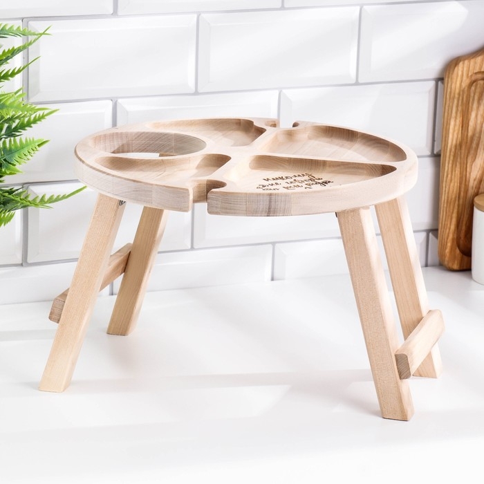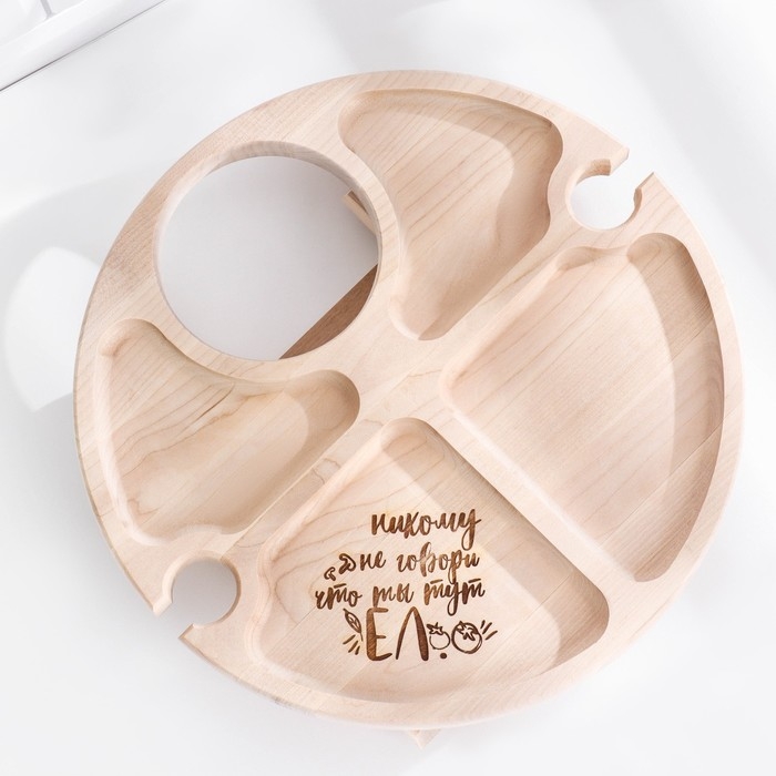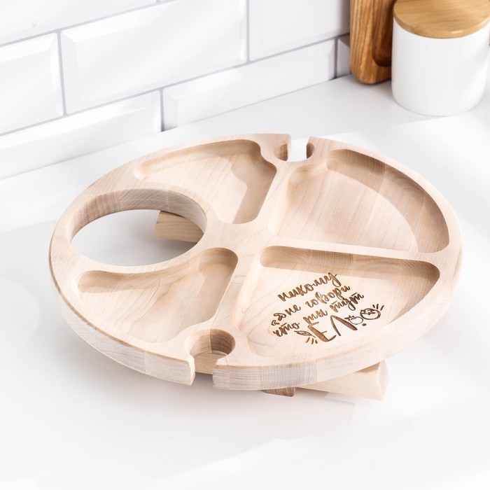 Столик - поднос с менажницей и складными ножками "Никому не говори" D=30х2 см, береза