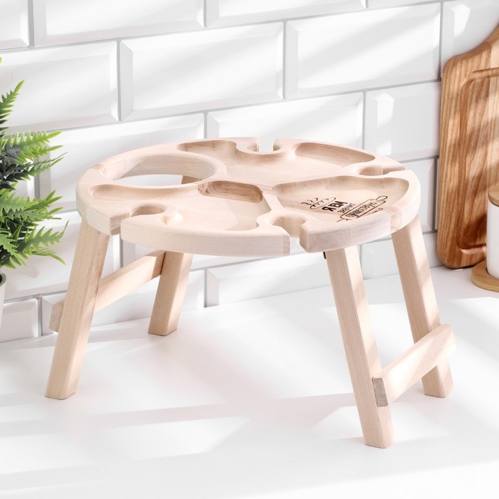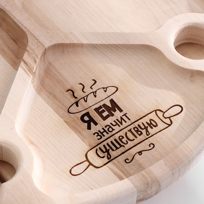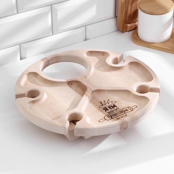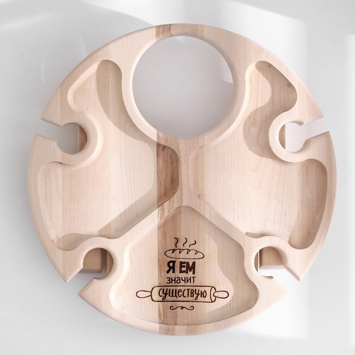 Столик - поднос с менажницей и складными ножками "Я ем, значит существую"D=30x2,8 см, береза