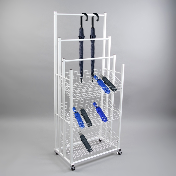 Стойка под зонты, разборная, 3 наклонные корзины, 3 яруса, 60×40×150 см, цвет белый