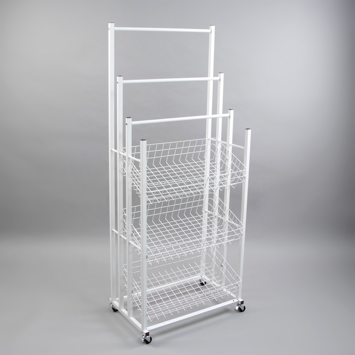Сетчатые корзины-накопители, стойки и вертушки особенно актуальны при проведении распродаж.