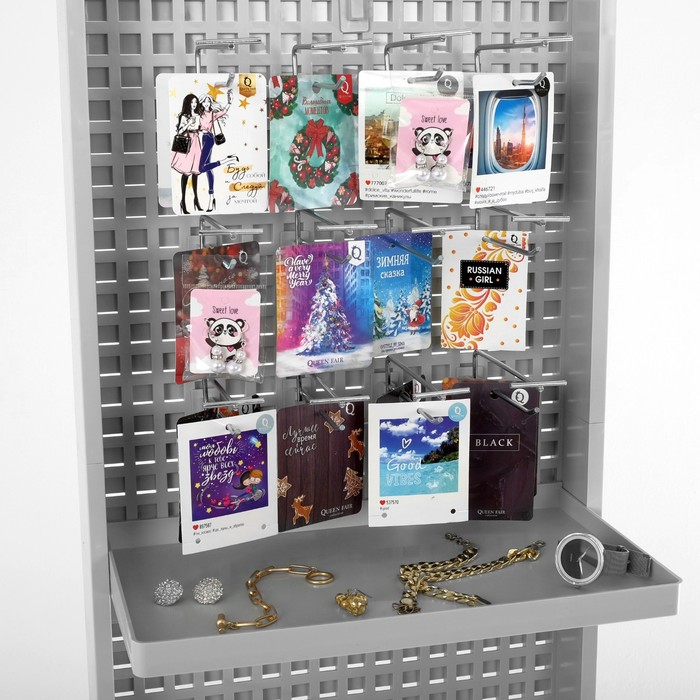 Стойка «Queen Fair» брендированная (+25 крючков), 43×32,5×198,5 см, шаг 25мм, цвет серый