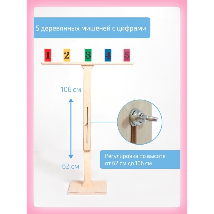 Стойка с мишенями-целями для доски Бильгоу – это уникальный развивающий набор, предназначенный для детей от 3 лет. Изготовленный из высококачественного дерева, он помогает улучшить координацию движений и мелкую моторику.