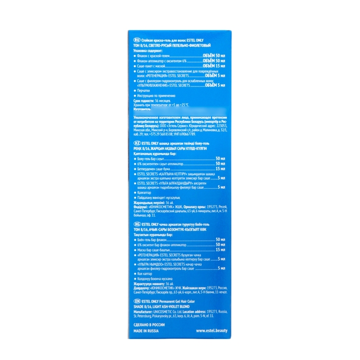 Стойкая краска-гель для волос ESTEL ONLY светло-русый, пепельно-фиолетовый