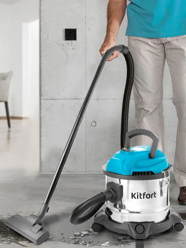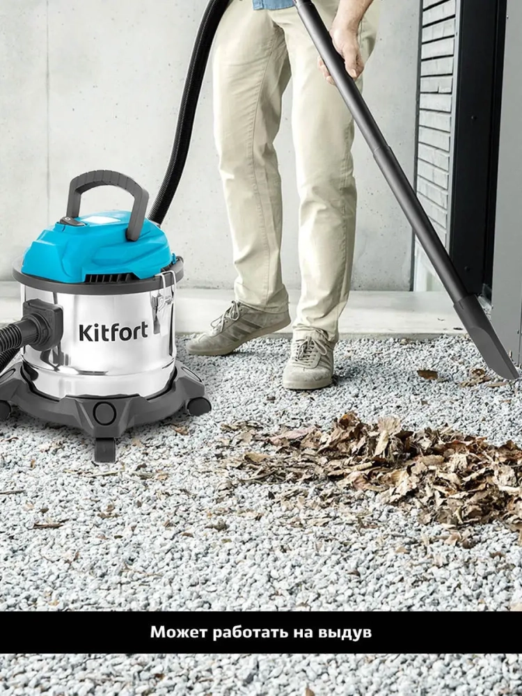 Хозяйственный пылесос Kitfort КТ-547 может проводить сухую уборку, а также засасывать воду и влажный мусор. Пылесос оснащен роликами для удобства перемещения и ручкой для переноски. Специальные держатели на корпусе позволяют хранить все необходимые насадки и аксессуары под рукой. Фильтры большой площади не засоряются при продолжительной уборке, их легко снять и почистить, а при необходимости их можно даже промыть водой. Если шланг присоединить к выходному отверстию, то пылесос начинает работать на выдув. Им можно продуть ноутбук. В комплекте идут все стандартные аксессуары: гибкий шланг, удлинительные трубки, щетка для пола с переключателем пол/ковер, насадки. Пылесос можно использовать как для повседневной уборки бытовых помещений различной площади, так и для уборки случайно разлитой по полу воды или для уборки мелкого строительного мусора (древесной стружки, опилок и пр.) с соблюдением мер предосторожности.