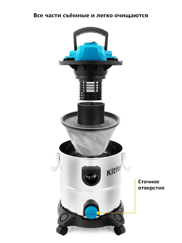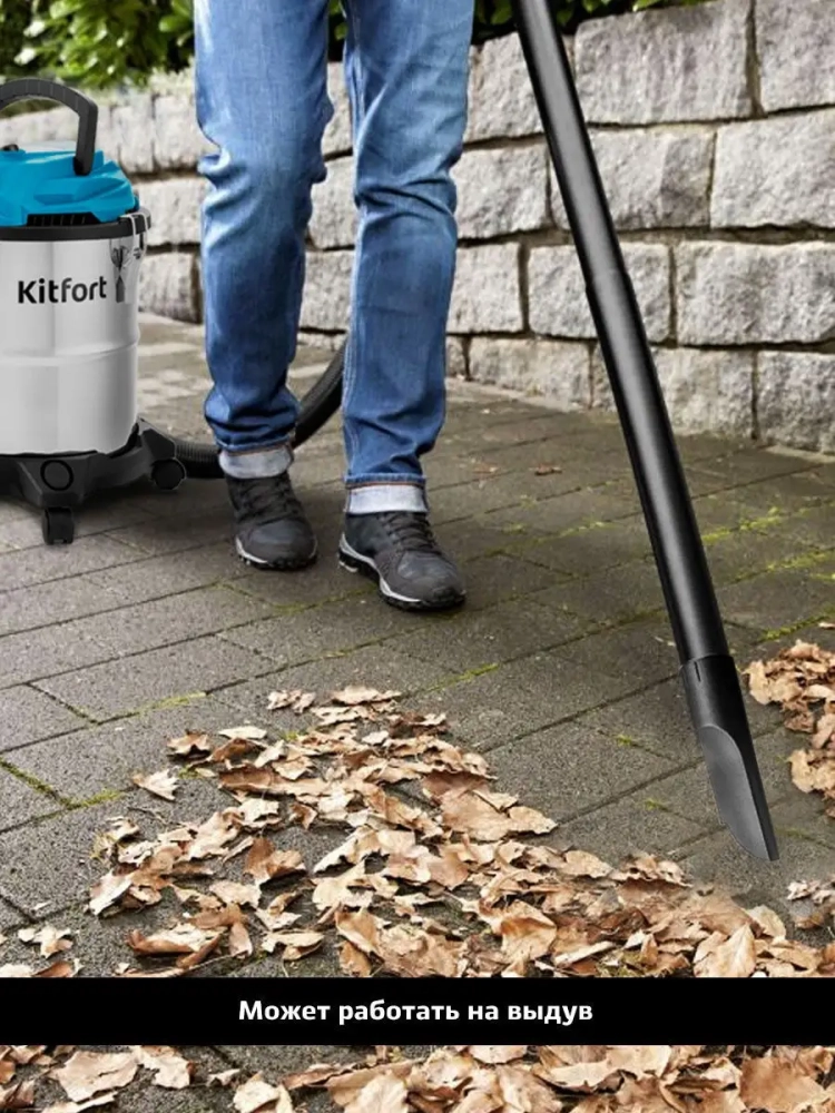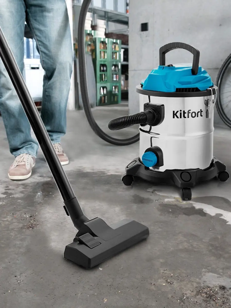 Хозяйственный пылесос Kitfort КТ-548 может проводить сухую уборку, а также засасывать воду и влажный мусор. Пылесос можно использовать как для повседневной уборки бытовых помещений различной площади. В большой стальной пылесборник вмещается много мусора, а чистить его очень просто. Пылесос оснащен роликами для удобства перемещения. Специальные держатели на корпусе позволяют хранить все необходимые насадки и аксессуары под рукой. Если шланг присоединить к выходному отверстию, то пылесос начинает работать на выдув. Им можно продуть ноутбук. В комплекте идут все стандартные аксессуары: гибкий шланг, удлинительные трубки, щетка для пола с переключателем пол/ковер, насадки. Пылесос можно использовать как для повседневной уборки бытовых помещений различной площади, так и для уборки случайно разлитой по полу воды или для уборки мелкого строительного мусора (древесной стружки, опилок и пр.) с соблюдением мер предосторожности.
