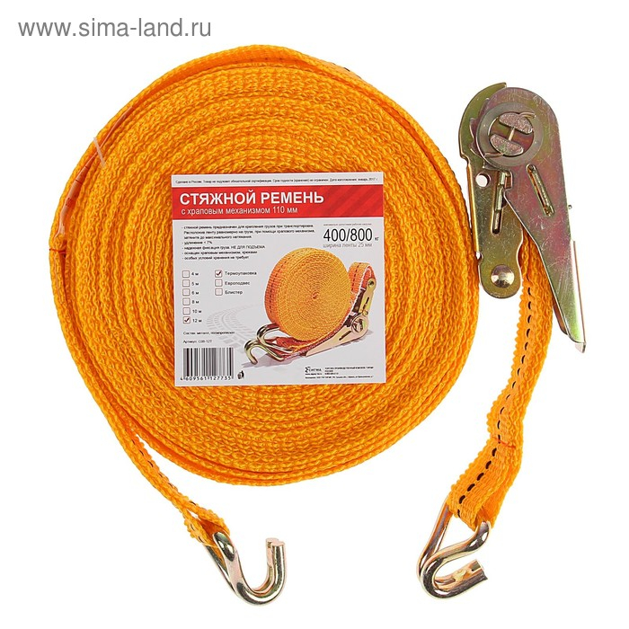 Стяжка груза с механизмом 110 мм, ширина ленты 25 мм, нагрузка 400/800 кг, длина 12 м