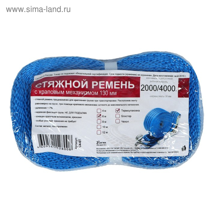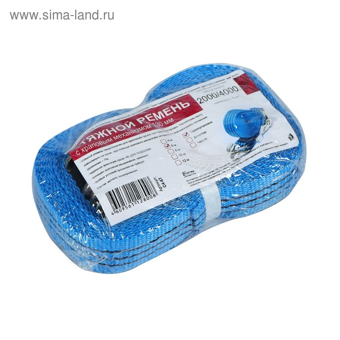 Стяжка груза с механизмом 130 мм, ширина ленты 38 мм, нагрузка 2000/4000 кг, длина 6 м