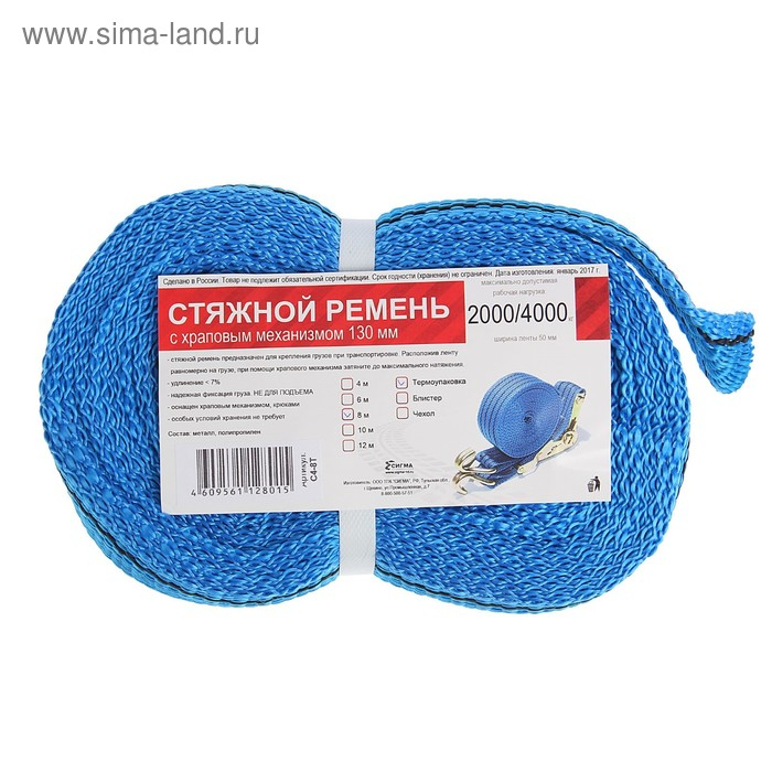 Стяжка груза с механизмом 130 мм, ширина ленты 38 мм, нагрузка 2000/4000 кг, длина 8 м