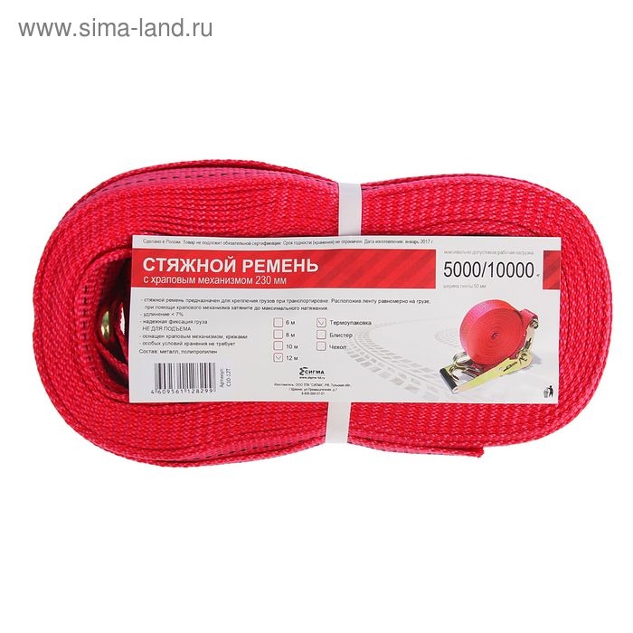 Стяжка груза с механизмом 230 мм, ширина ленты 50 мм, нагрузка 5000/10000 кг, длина 12 м