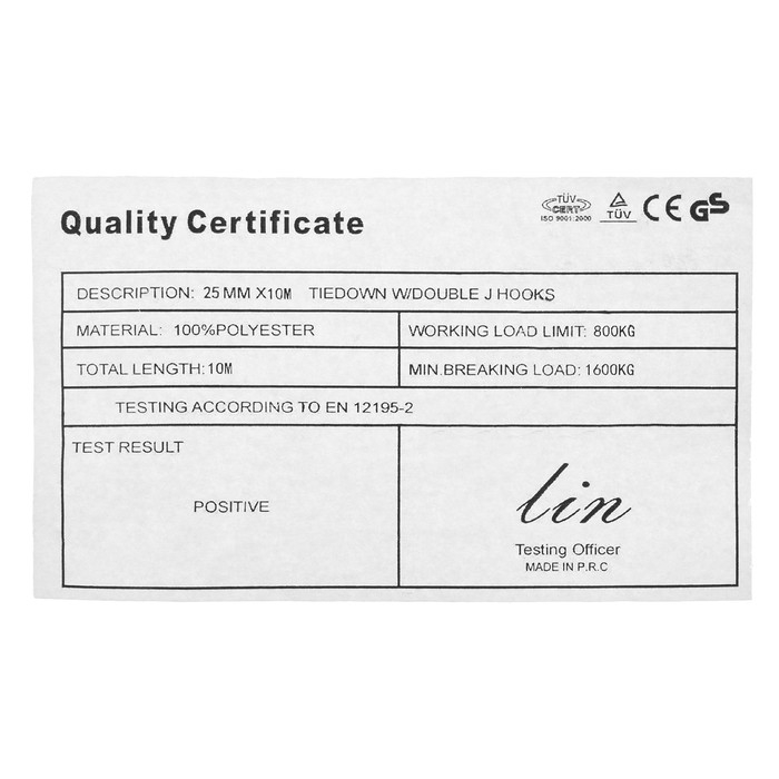 Стяжка груза с механизмом, ширина ленты 25 мм, нагрузка 800 кг, длина 10 м
