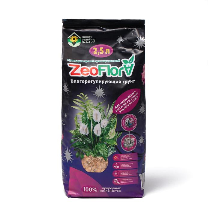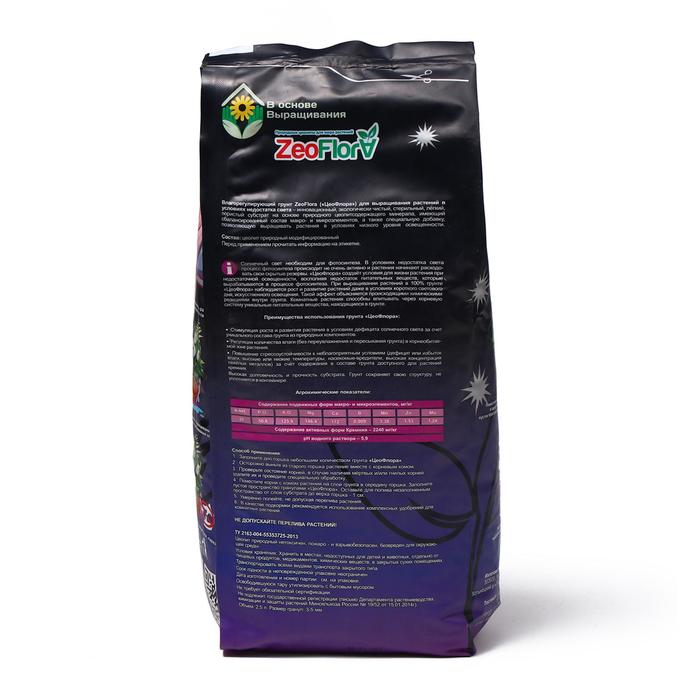 Субстрат минеральный ZeoFlora для растений с недостатком света, цеолит, влагорегулирующий грунт, 2.5 л, фракция 3-5 мм