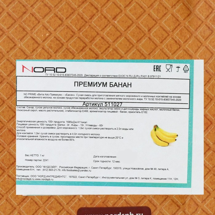 Сухая смесь для мягкого мороженого «Вита-Айс премиум» банан, 1 кг