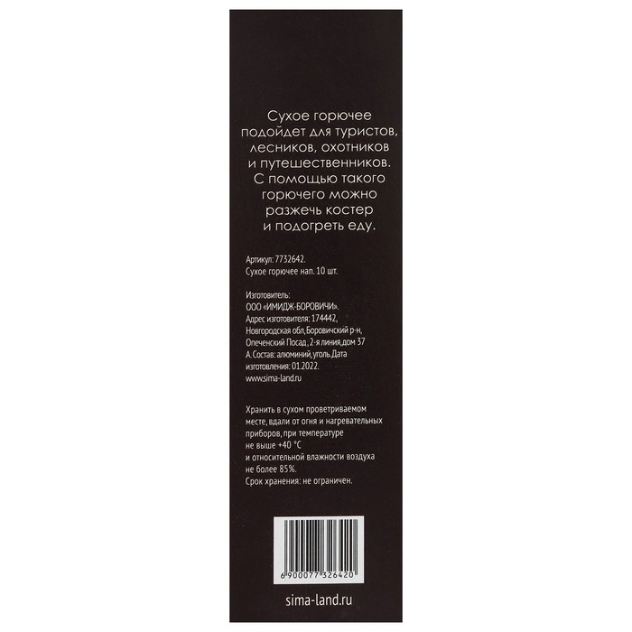 Сухое горючее используется для розжига дров, мангалов, костров, каминов, печей и грилей. В упаковке 10 таблеток из уротропина.