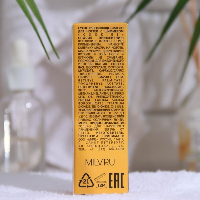 Сухое укрепляющее масло для ногтей с шиммером «COOKIES», 15 мл