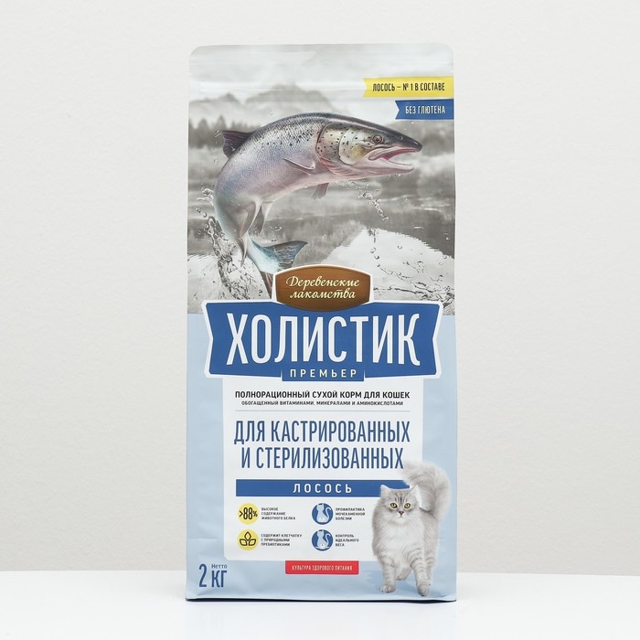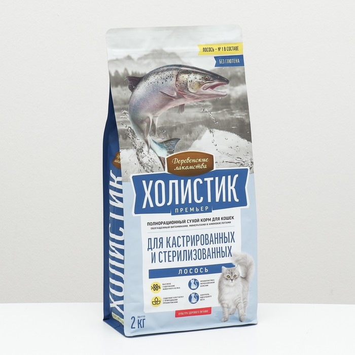 Сухой корм Холистик Премьер "Деревенские лакомства", д/стерил. и кастр. кош, лосось, 2 кг