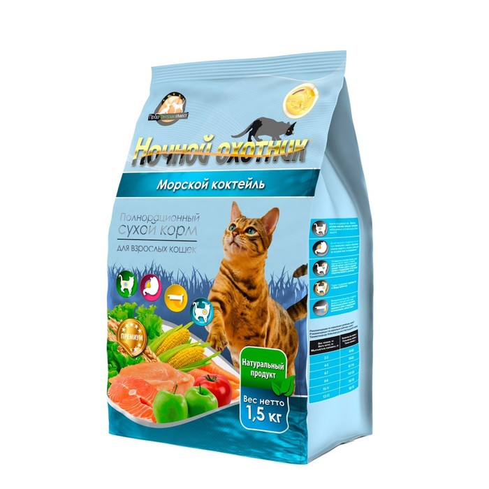 Сухой корм "Ночной охотник" для кошек, морской коктейль, 1,5 кг
