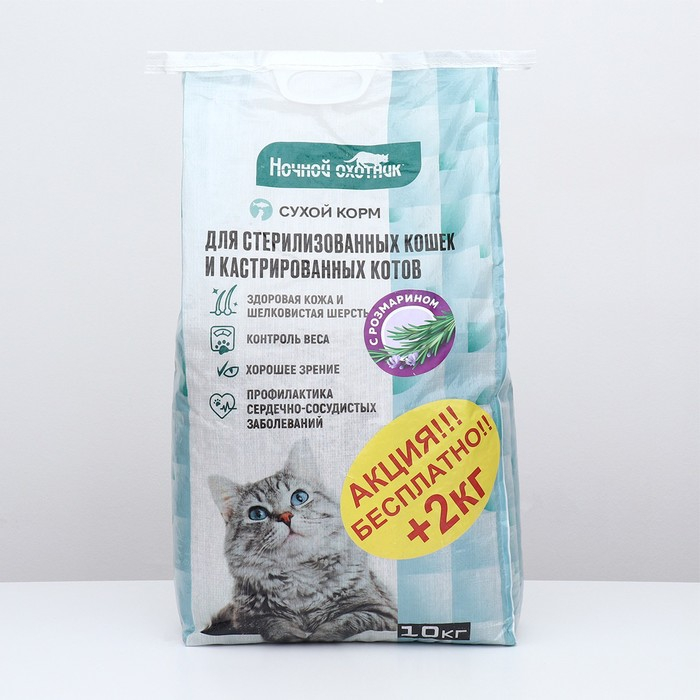 Сухой корм "Ночной охотник" Премиум для стерилизованных кошек и кастр. котов, Акция! 10+2 кг