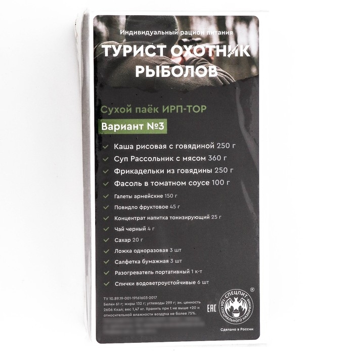 Сухой паек "СпецПит" ТУРИСТ ОХОТНИК РЫБОЛОВ Вариант 3 (ИРП-ТОР 3), 1,47 кг