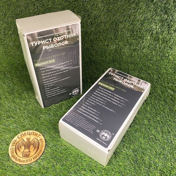 Производитель позаботился о том, чтобы рыбаки или охотники, туристы в любое время могли поесть пищу в горячем виде. Для этого в пайке предусматривается портативный разогреватель и спички, для которых не страшны влага или ветер. Для удобства приема пищи в наборе имеется также биоразлагаемая ложка и бумажные салфетки.