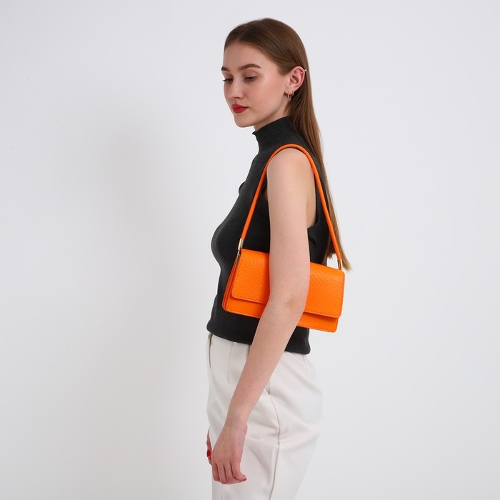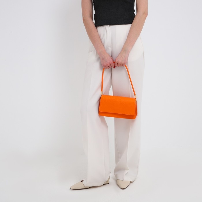 Сумка-багет на клапане, цвет оранжевый