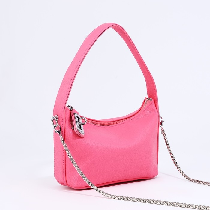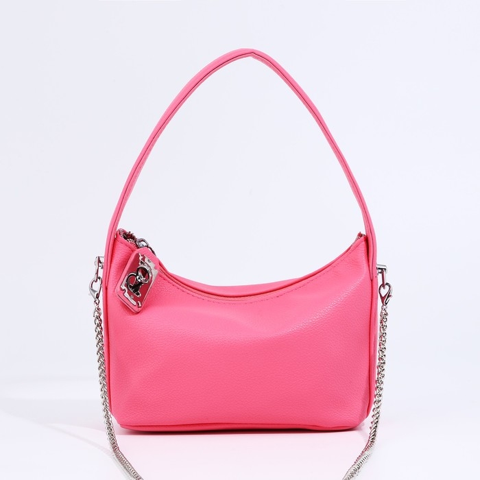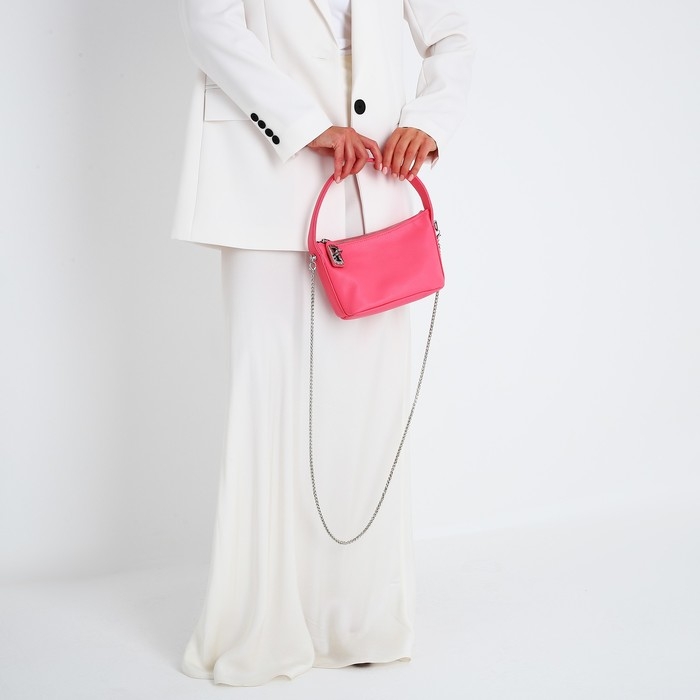 Сумка-багет на молнии, цепочка, цвет розовый