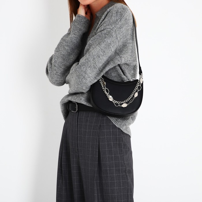 Сумка-багет на молнии, цвет чёрный