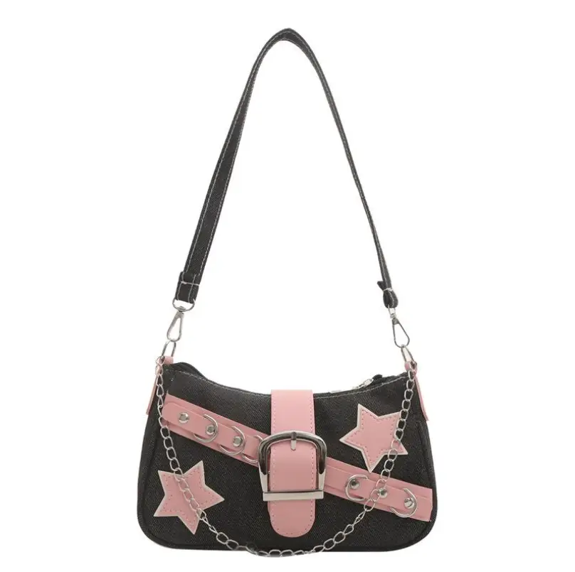Сумка-багет с розовыми звездами черная