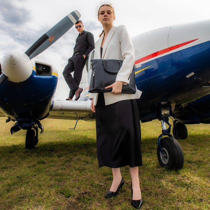 Сумка деловая TEXTURA, большой размер, цвет чёрный