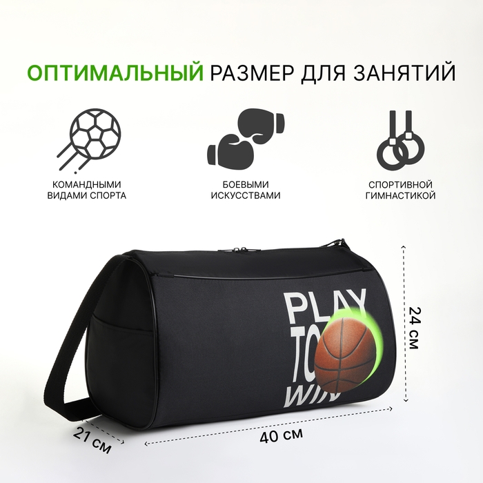 Сумка детская спортивная на молнии для мальчика, наружный карман, регулируемый ремень, цвет чёрный
