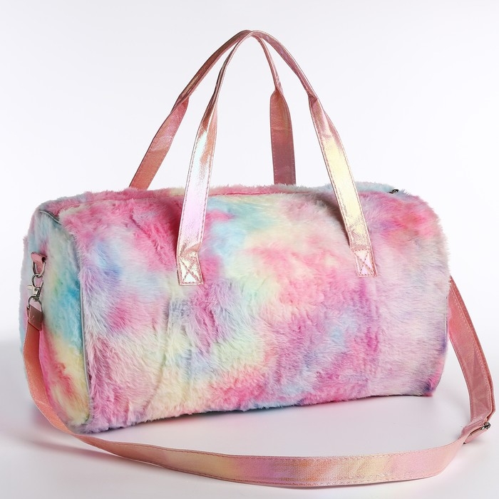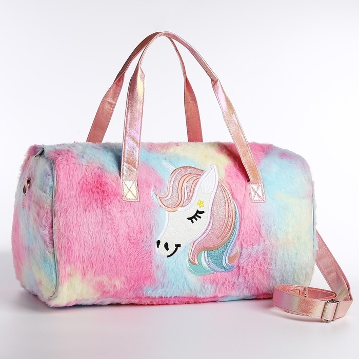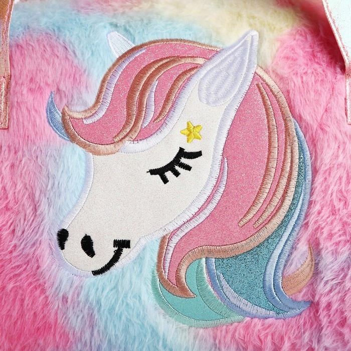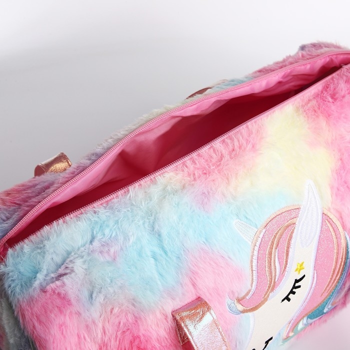 Сумка детская спортивная плюшевая для девочки «Радужный единорог» розовый