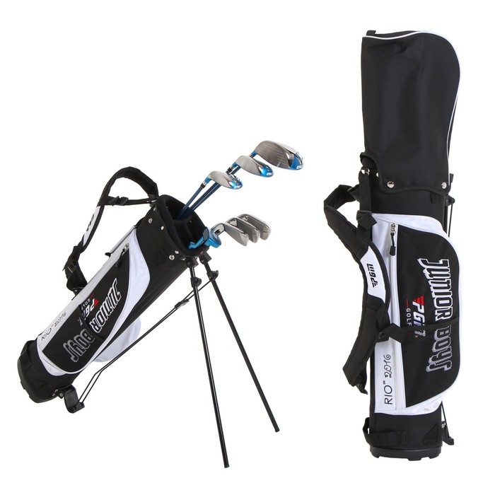 Сумка для переноски гольф клюшек, с откидными ножками-опорами, подойдет детям от 5 до 12 лет.