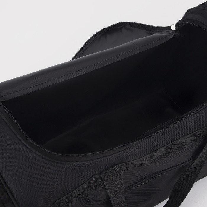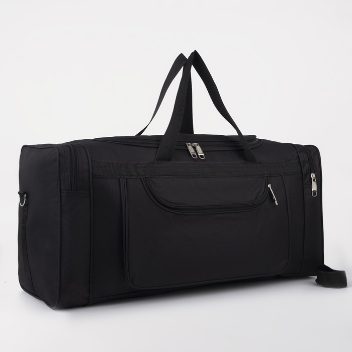 Сумка дорожная, 3 отдела на молниях, наружный карман, длинный ремень, цвет чёрный