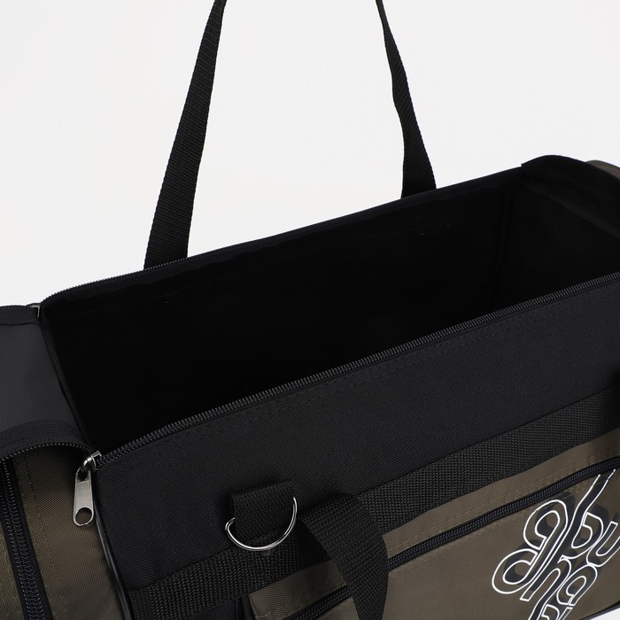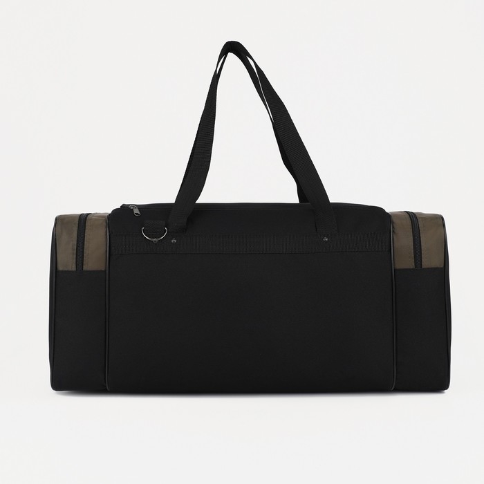 Сумка дорожная, 3 отдела на молниях, наружный карман, длинный ремень, цвет чёрный/хаки
