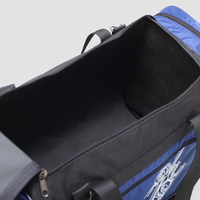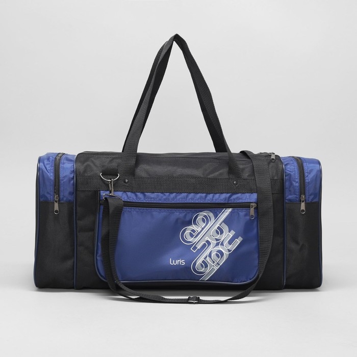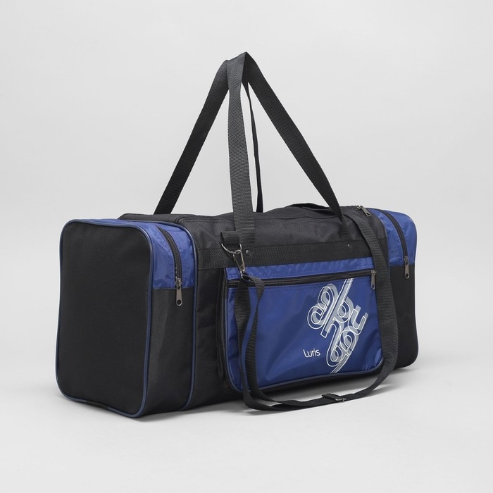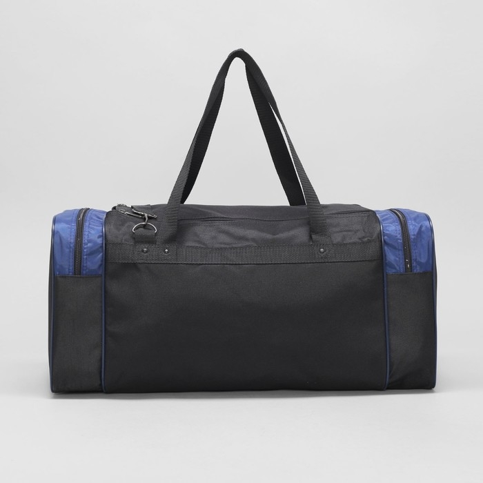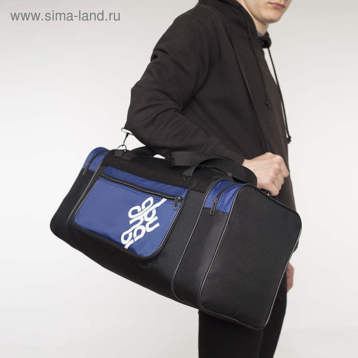 Сумка дорожная, 3 отдела на молниях, наружный карман, длинный ремень, цвет чёрный/синий