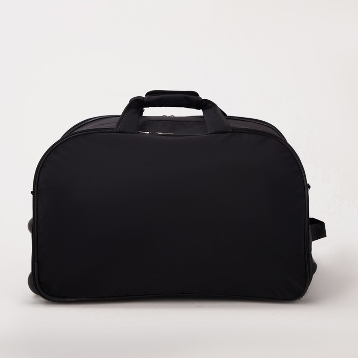 Сумка дорожная на колёсах, 2 отдела на молниях, 2 наружных кармана, длинный ремень, цвет чёрный