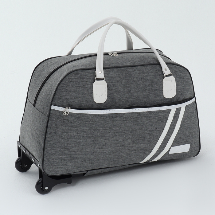 Сумка дорожная на колёсах, наружный карман, цвет серый