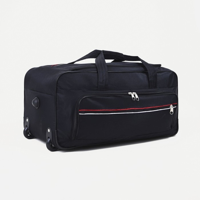 Сумка дорожная на колёсах, отдел на молнии, 3 наружных кармана, цвет чёрный