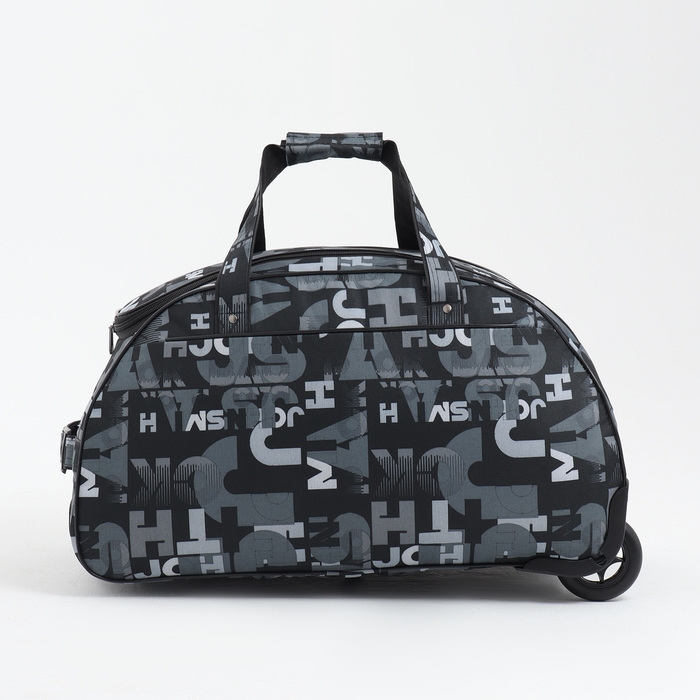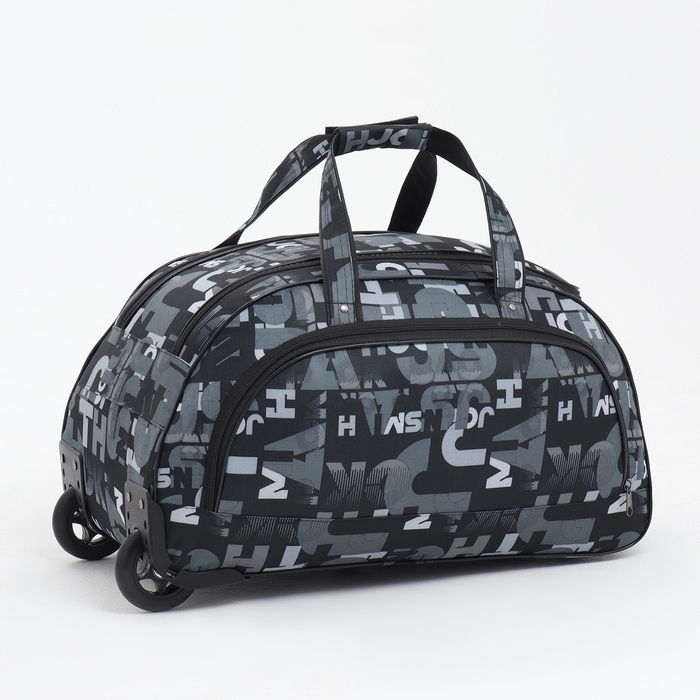 Сумка дорожная на колёсах, отдел на молнии, наружный карман, цвет чёрный/серый