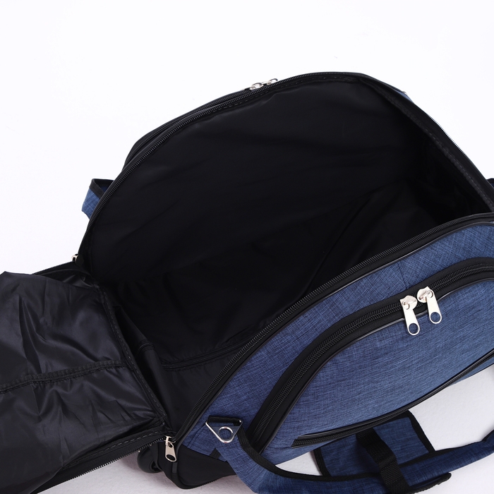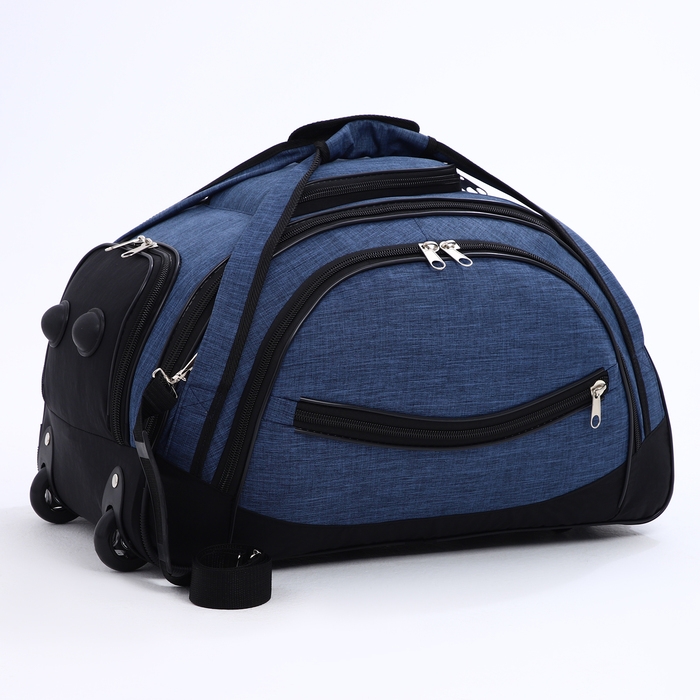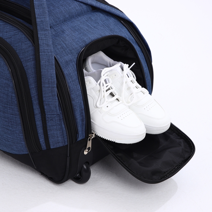 Сумка дорожная на колёсах, отдел на молнии, отдел для обуви, 3 наружных кармана, цвет чёрный/синий