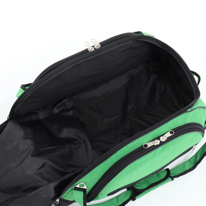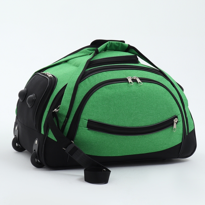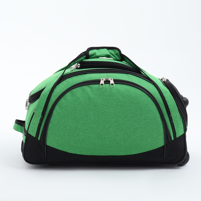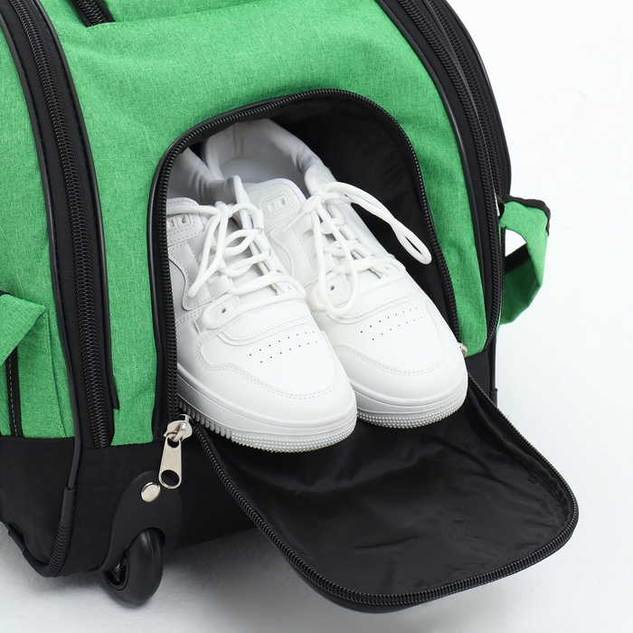 Сумка дорожная на колёсах, отдел на молнии, отдел для обуви, 3 наружных кармана, цвет чёрный/зелёный