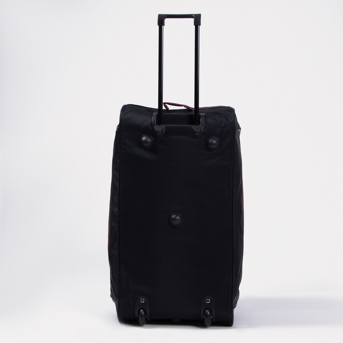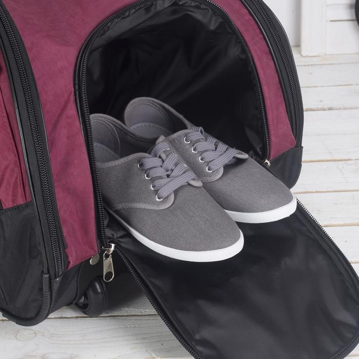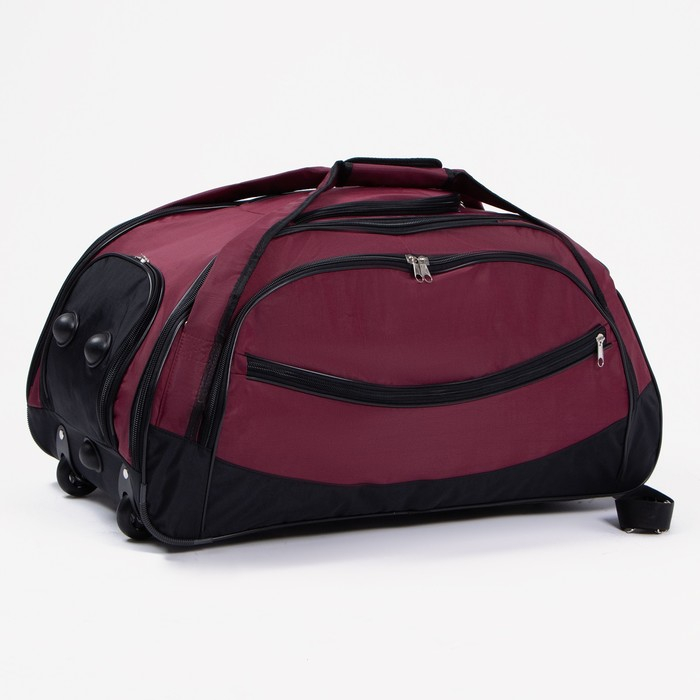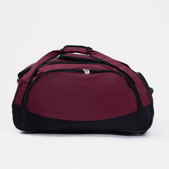 Сумка дорожная на колёсах, отдел на молнии, отдел для обуви, 3 наружных кармана, длинный ремень, цвет чёрный/бордовый