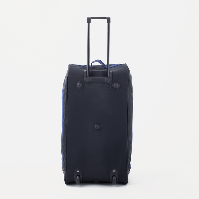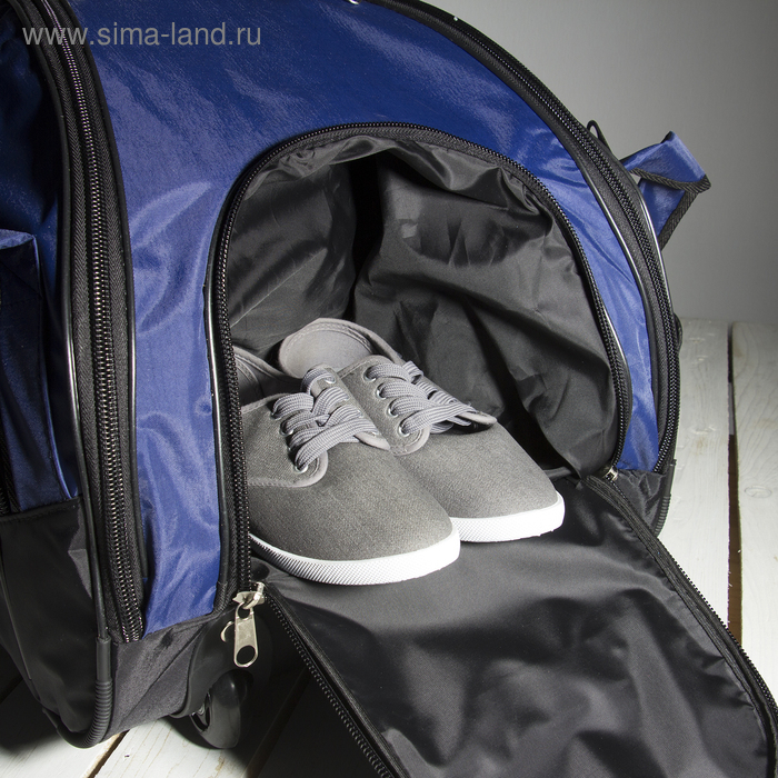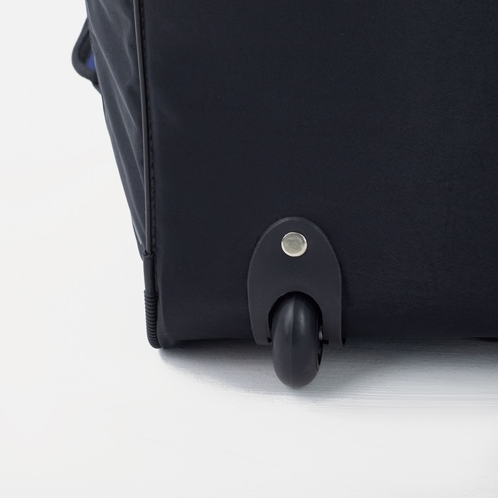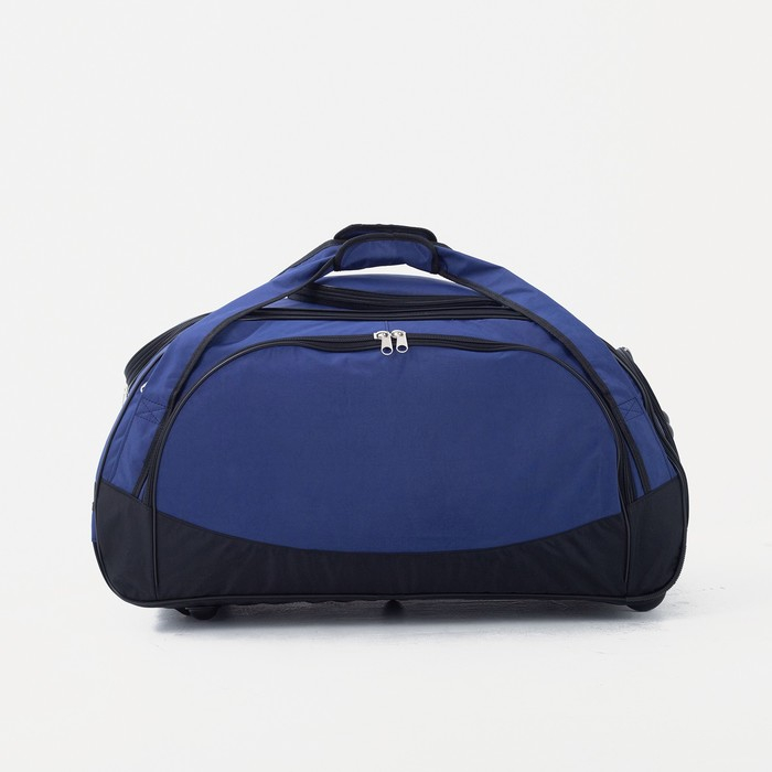 Сумка дорожная на колёсах, отдел на молнии, отдел для обуви, 3 наружных кармана, длинный ремень, цвет чёрный/синий