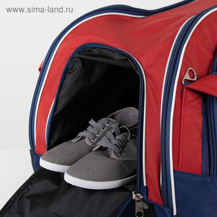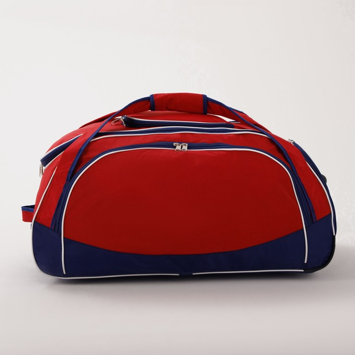 Сумка дорожная на колёсах, отдел на молнии, отдел для обуви, 3 наружных кармана, длинный ремень, цвет красный/синий