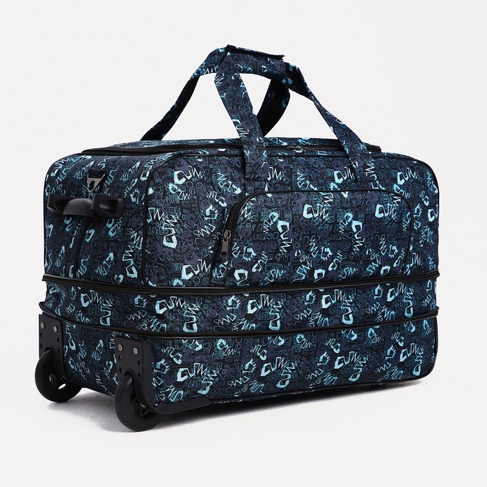 Сумка дорожная на колёсах, отдел на молнии, с увеличением, наружный карман, цвет чёрный/бирюзовый