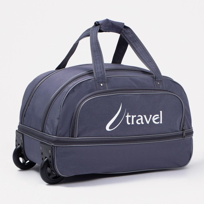 Сумка дорожная на колёсах, отдел на молнии с увеличением, наружный карман, цвет серый