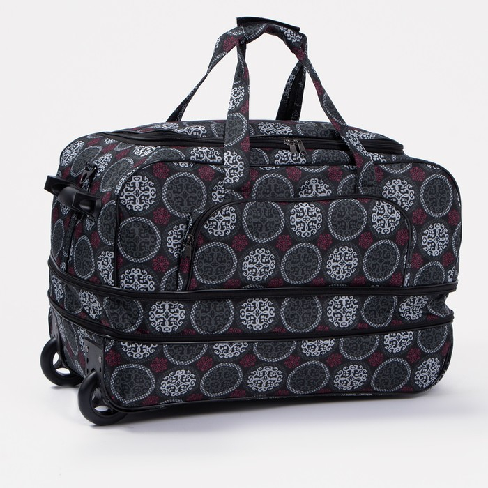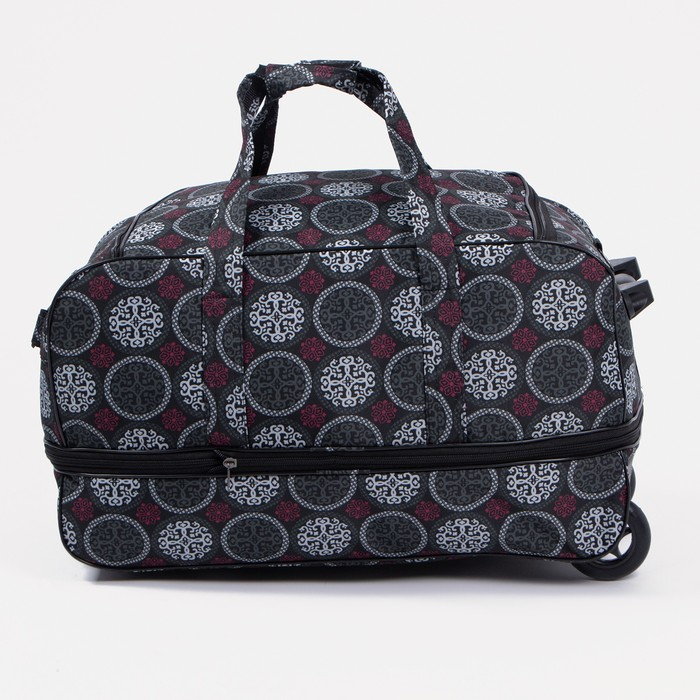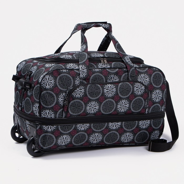- Мобильность: колёса из пластика и удобная ручка делают перемещение с сумкой комфортным даже на неровных поверхностях.