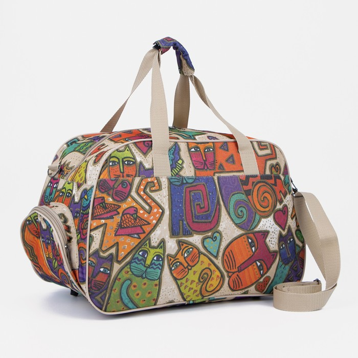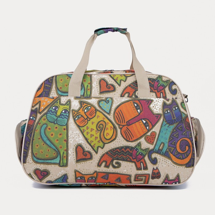 Сумка дорожная на молнии, 2 наружных кармана, длинный ремень, цвет бежевый/оранжевый