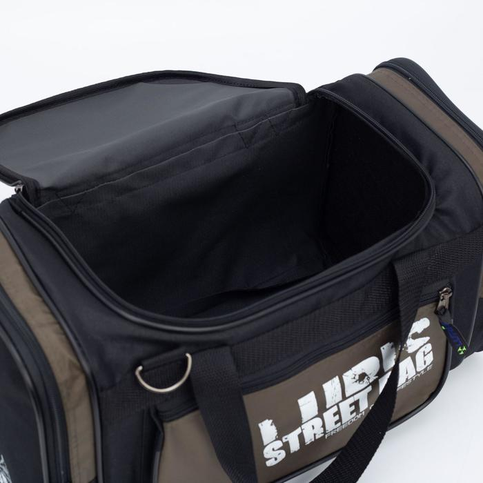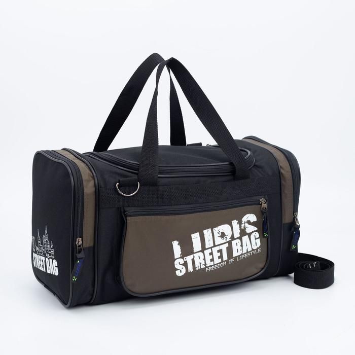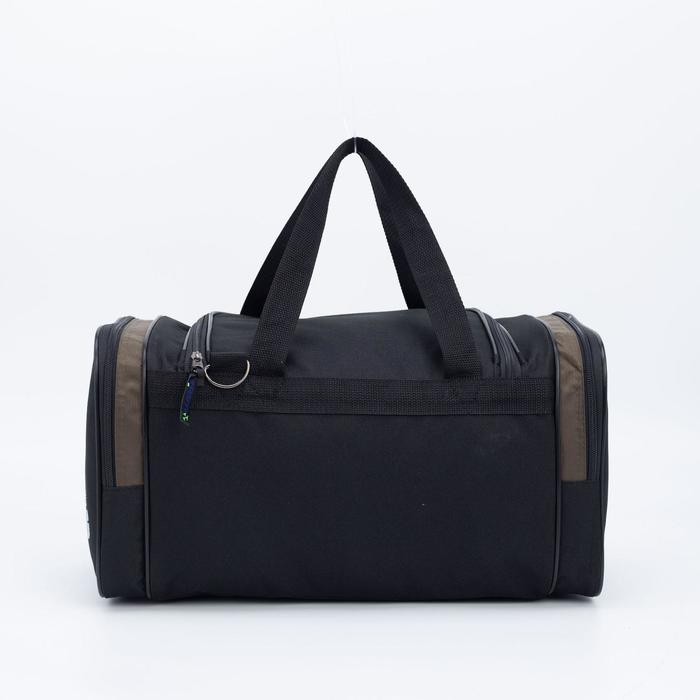 Сумка дорожная на молнии, 3 наружных кармана, длинный ремень, цвет чёрный/хаки