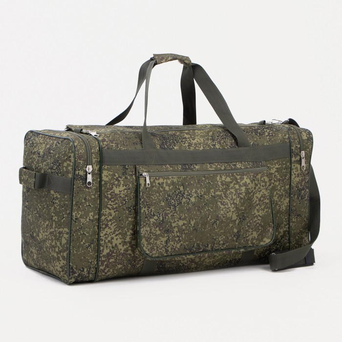 Сумка дорожная на молнии, 3 наружных кармана, длинный ремень, цвет хаки