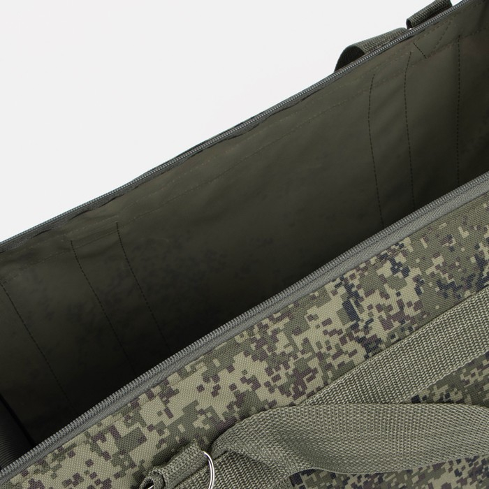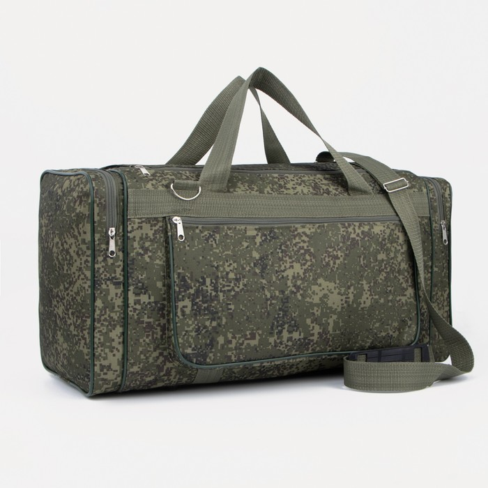 Сумка дорожная на молнии, 3 наружных кармана, длинный ремень, цвет камуфляж/зелёный